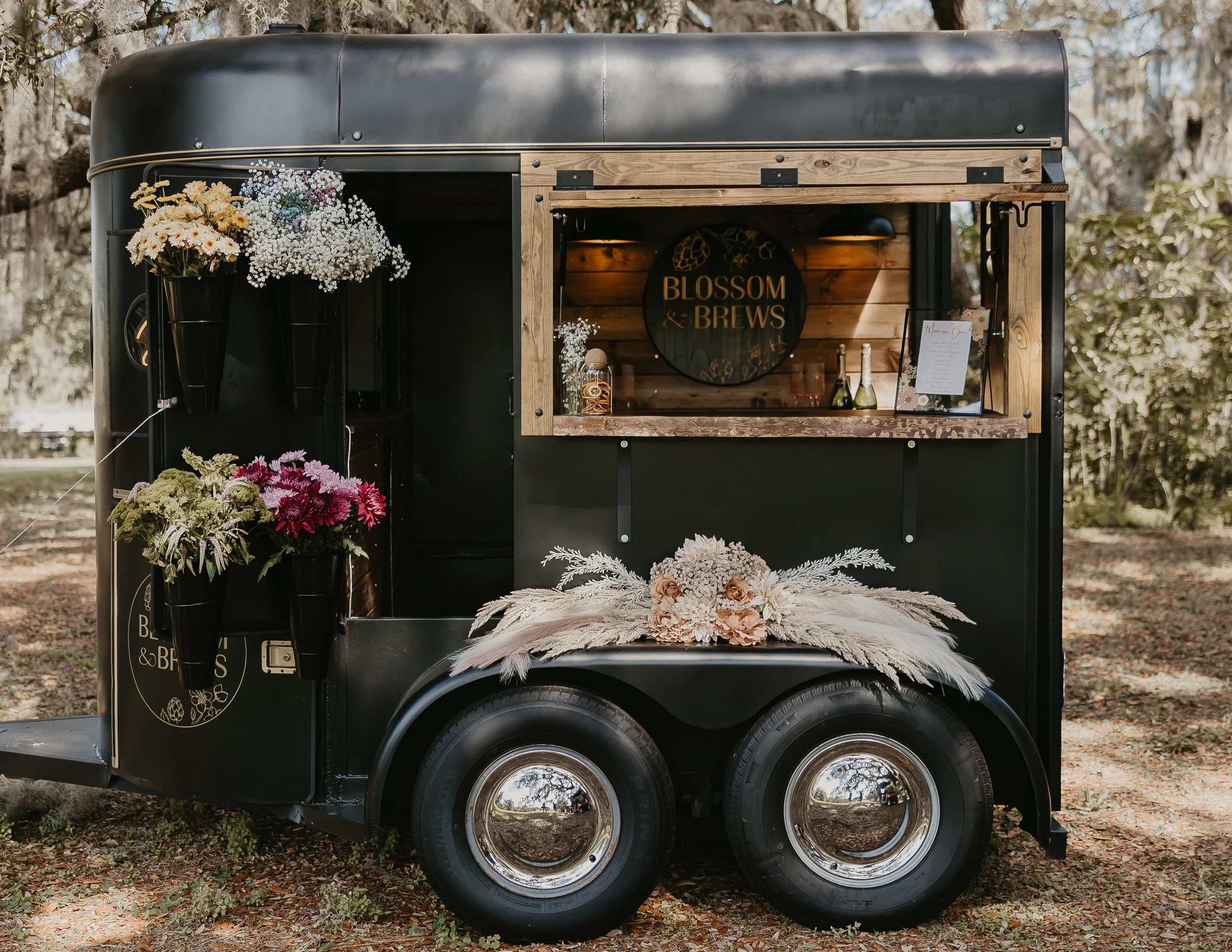 Meet Blossom & Brews — Central Florida’s go-to mobile bar and flower trailer bringing the flavor and the florals to your next celebration. We’re not your average bartending service… we’re the show-stopping, photo-worthy, vibe-setting centerpiece your event didn’t know it needed (but absolutely deserves).
